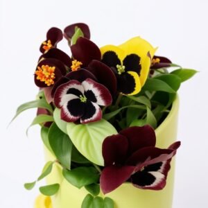 Bratki w ceramicznej kopercie sprawdzą się zarówno jako prezent, jak i dekoracja stołu – umieść tę kompozycję w centralnym miejscu – stworzysz wyjątkowo radosną i wiosenną atmosferę!