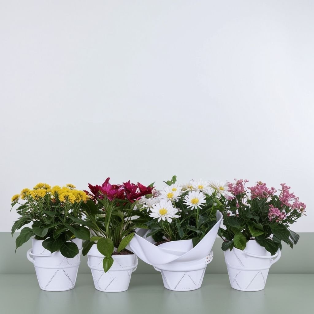 Kompaktowe, bujne chryzantemy w doniczkach w ogrodzie pozwolą Ci stworzyć wspaniałe, mobilne kompozycje, które ozdobią werandę lub ganek.