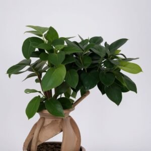 Ficus microcarpa 'Nitida’ w doniczce to elegancka roślina doniczkowa, która łączy w sobie naturalne piękno i łatwość pielęgnacji. Dzięki gęstej, lśniącej zieleni i zwartemu pokrojowi będzie doskonałym akcentem w każdym wnętrzu. Główne zalety: Dekoracyjność: Błyszczące, ciemnozielone liście i gładka, jasnoszara kora tworzą elegancki wygląd, który doda Twojej przestrzeni świeżości i stylu. Bezpretensjonalność: Ficus 'Nitida’ łatwo adaptuje się do warunków wewnętrznych, wymaga umiarkowanego podlewania i dobrze znosi przycinanie, co pozwala zachować pożądany kształt. Oczyszczanie powietrza: Roślina ta znana jest ze swojej zdolności do oczyszczania powietrza ze szkodliwych substancji, przyczyniając się do stworzenia zdrowej atmosfery w pomieszczeniu. Idealny prezent: Dzięki estetycznemu wyglądowi i łatwości pielęgnacji, Ficus 'Nitida’ będzie doskonałym prezentem dla bliskich, współpracowników lub jako miły dodatek do Twojego wnętrza. Ten fikus nie tylko ozdobi Twój dom lub biuro, ale także zapewni poczucie spokoju i harmonii.