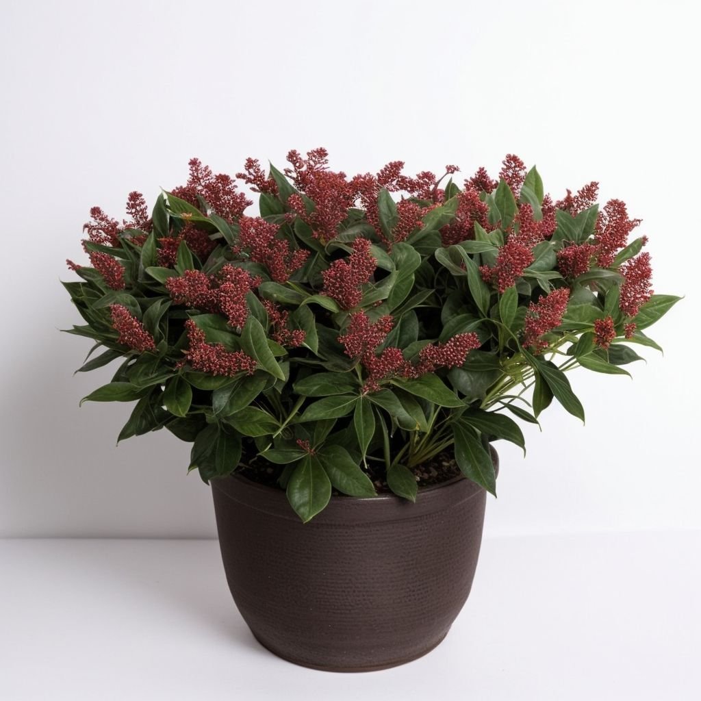 Japońska skimmia różyczka to elegancka i pełna wdzięku roślina, która przyciąga wzrok ciemnozielonymi, błyszczącymi liśćmi i jaskrawoczerwonymi jagodami, które jesienią pojawiają się na krzewie. Będzie doskonałym dodatkiem do każdego wnętrza, dodając mu elegancji i naturalnego piękna. Roślina ta nie wymaga dużej pielęgnacji, ale lubi półcień i umiarkowane podlewanie. Japońska skimmia różyczka dobrze rośnie w chłodnych warunkach, dlatego jest idealnym wyborem do aranżacji wnętrz w okresie jesienno-zimowym, kiedy jej jaskrawe jagody dodają koloru i nastroju. Jej dekoracyjny wygląd doskonale komponuje się z innymi roślinami, tworząc harmonijne kompozycje. Japońska skimmia różyczka w doniczce to nie tylko stylowy element wystroju, ale także symbol naturalnego piękna, które nie pozostawi nikogo obojętnym.