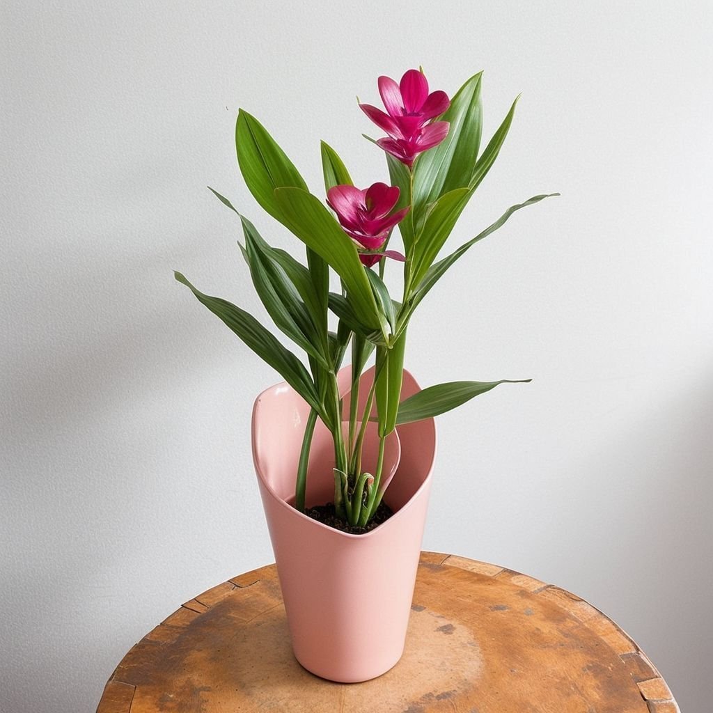Egzotyczna kurkuma może stać się prawdziwą ozdobą kolekcji i wyjątkową ozdobą wnętrza. Okres kwitnienia kurkumy trwa od czerwca do końca września.