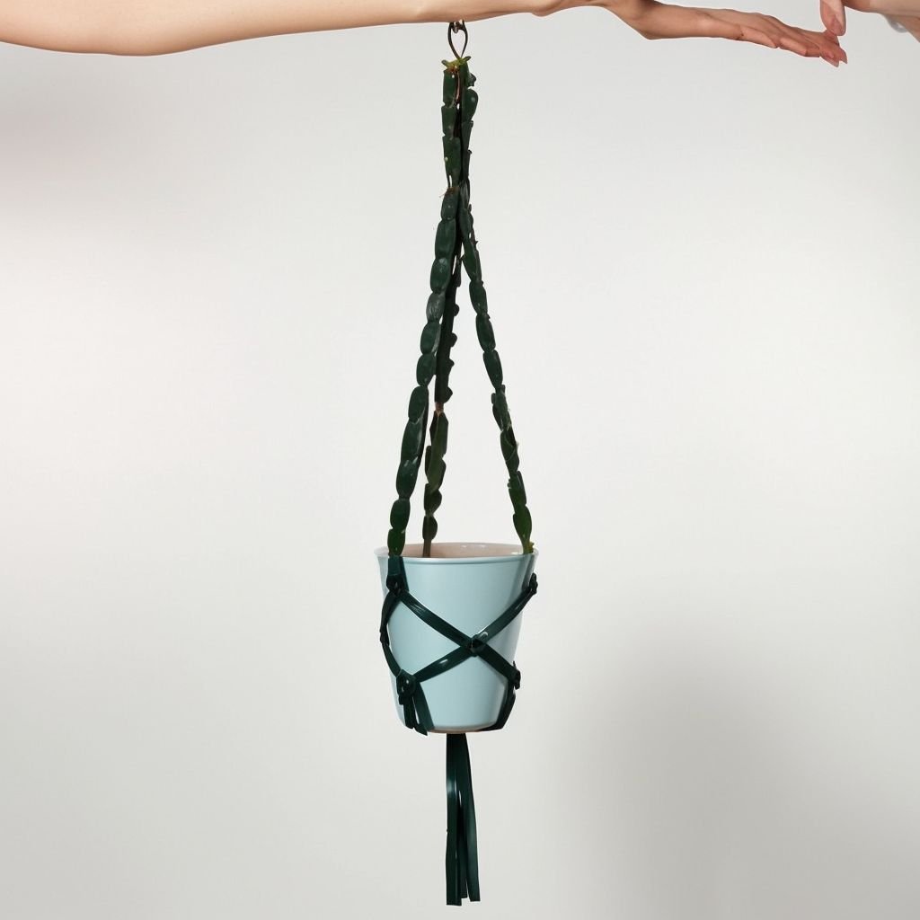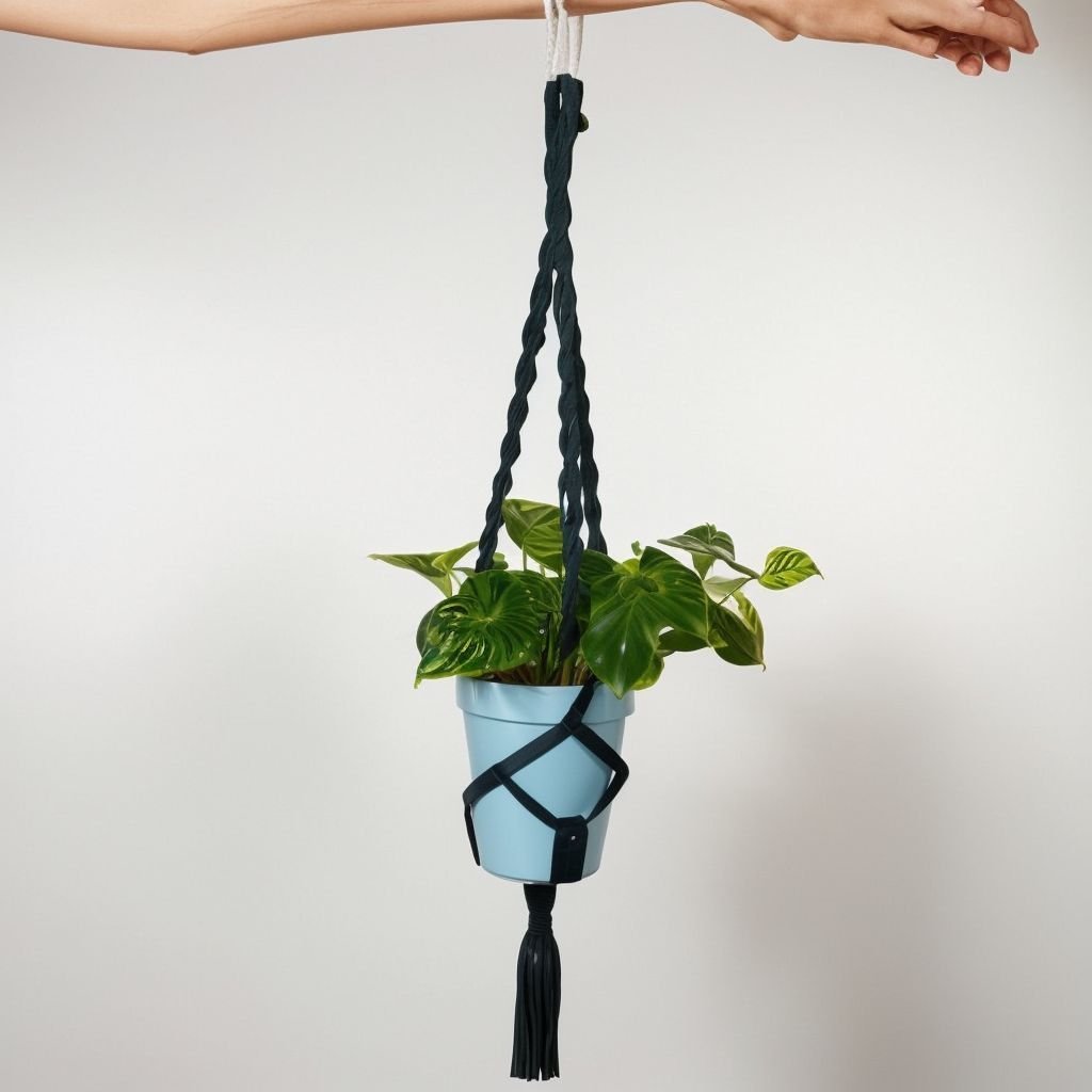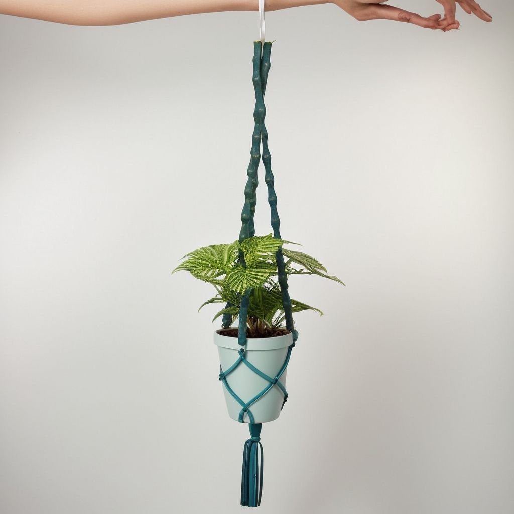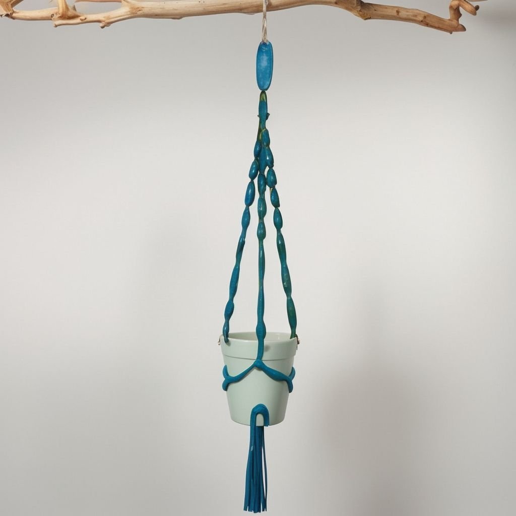 Niebieska wisząca doniczka makrama