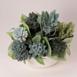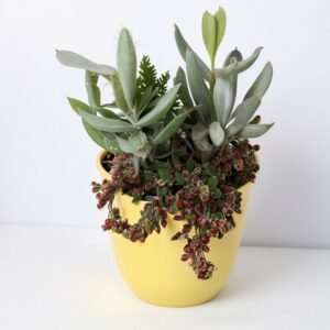 Zapraszamy do otwarcia drzwi do świata piękna i naturalnej elegancji z naszą wykwintną doniczką na sukulenty w wiklinowym koszu. Ta wyrafinowana kompozycja zachwyca nie tylko estetycznym wyglądem, ale także niezwykłą łatwością pielęgnacji, dzięki czemu idealnie wkomponuje się w każde wnętrze. Wybrane przez nas sukulenty nie tylko idealnie wpasowują się w wiklinowy kosz, ale również posiadają szereg naturalnych zalet. Są znane ze swojej zdolności magazynowania wody w liściach, co czyni je niezwykle trwałymi i łatwymi w pielęgnacji. Rośliny te nie tylko dodają zieleni Twojemu wnętrzu, ale także wprowadzają atmosferę spokoju i harmonii. Ta doniczka na sukulenty w wiklinowym koszu to wspaniały prezent dla Ciebie lub bliskiej Ci osoby. Dodaj ją do swojego domu lub biura, aby stworzyć atmosferę, która zachwyca swoim pięknem i prostotą.