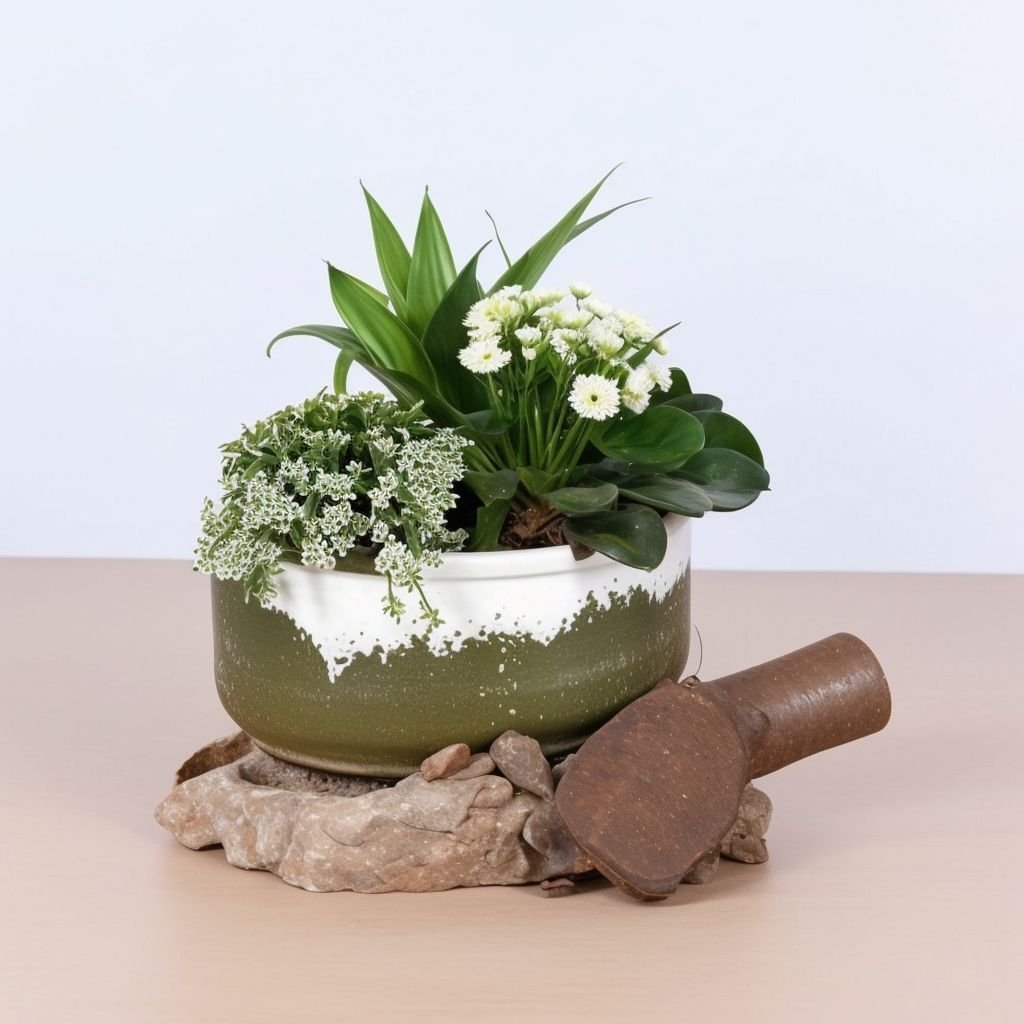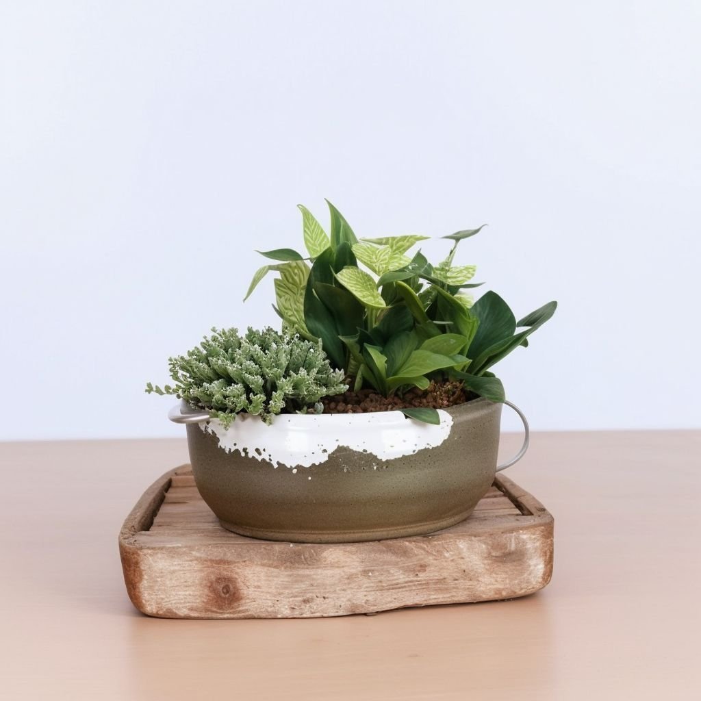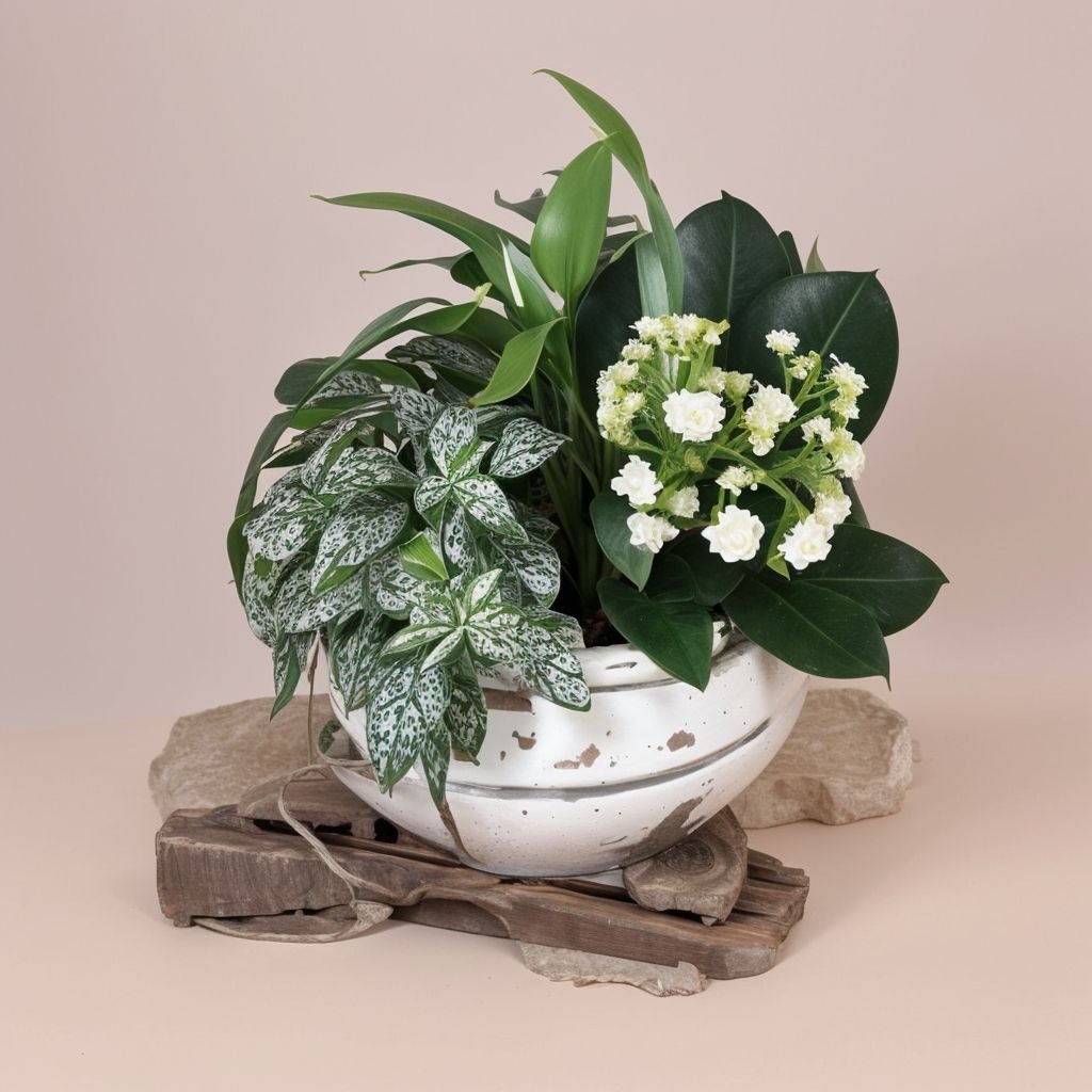 Rośliny w szklanym i drewnianym wazonie stworzą niepowtarzalną kompozycję. Ożywią wnętrze, sprawią, że stanie się przytulne i prawdziwie domowe.