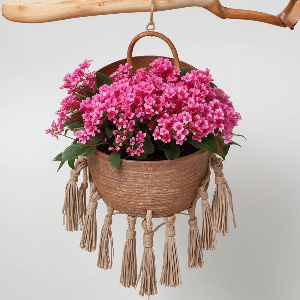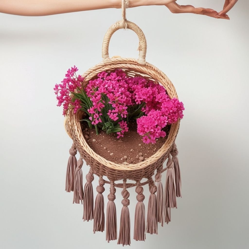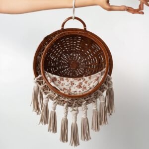 Wisząca donica łączy w sobie splot makramy i wiklinowy kosz z pnącza. Można ją łatwo zawiesić na haczyku na suficie lub na ścianie. Piękny wiklinowy kosz ukryje doniczkę. Nie musisz przesadzać rośliny do nowej donicy, aby dopasować ją do wnętrza. Taki kosz pomoże nie tylko stylowo ustawić rośliny, ale także doda wnętrzu jasnego akcentu. Idealny na parapetówkę lub wyjątkowy prezent. Uwaga! * Kosze występują w dwóch wariantach, podaj w komentarzach, który kolor wybrałeś i ciesz się pięknem. ** Roślina na zdjęciu nie jest wliczona w cenę, ale zawsze możesz ją zamówić tutaj.