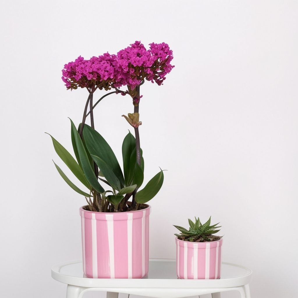 Zestaw roślin „Bright Harmony” to elegancka kompozycja dwóch pięknych roślin: storczyków i haworthii. Każda roślina wnosi swoje unikalne piękno, tworząc harmonijną równowagę. Rośliny umieszczone są w stylowych ceramicznych donicach na stojaku, co podkreśla ich elegancję i dodaje wnętrzu wyrafinowania. Zestaw będzie doskonałym dodatkiem do Twojego domu lub biura, wnosząc do przestrzeni nutę świeżości i naturalnej estetyki.