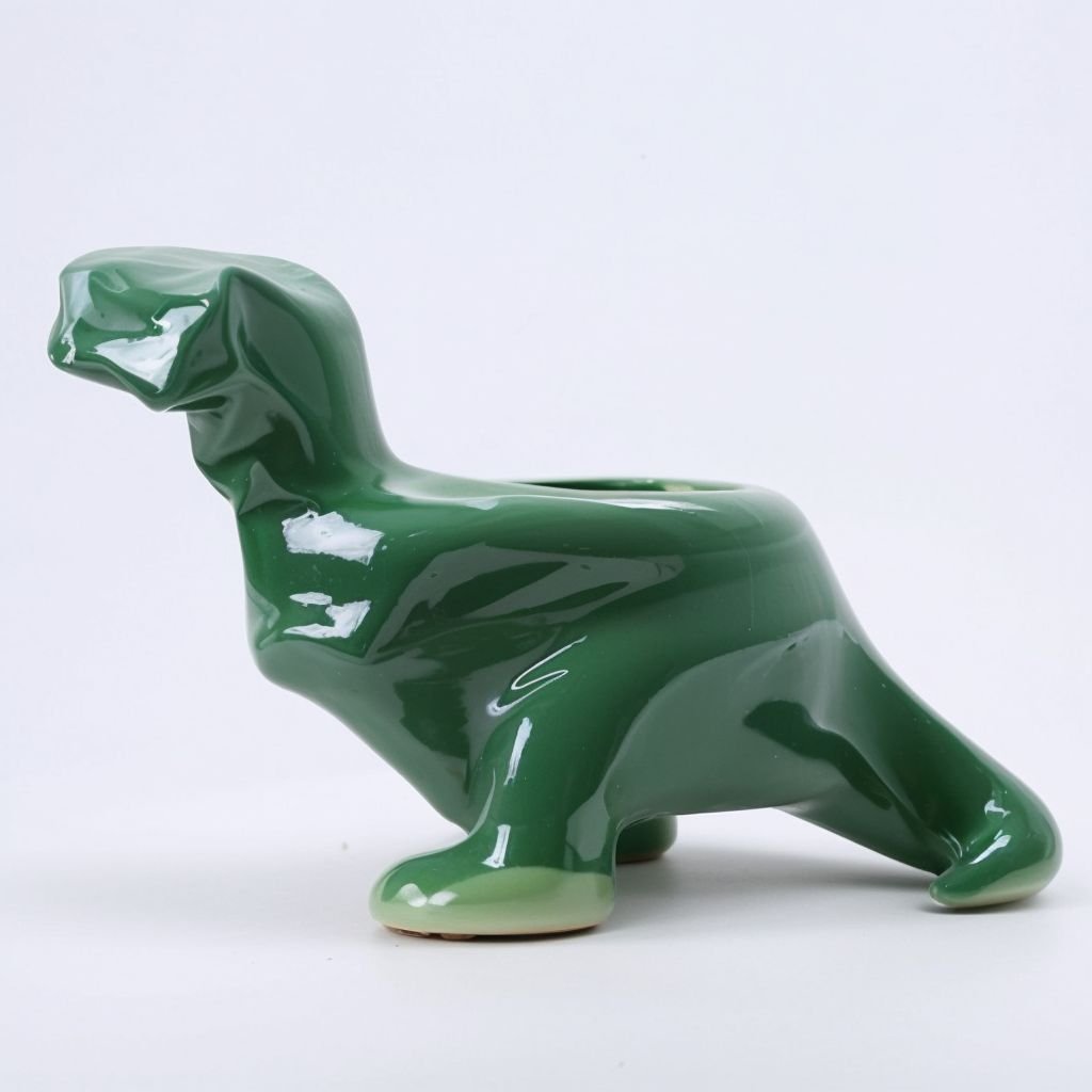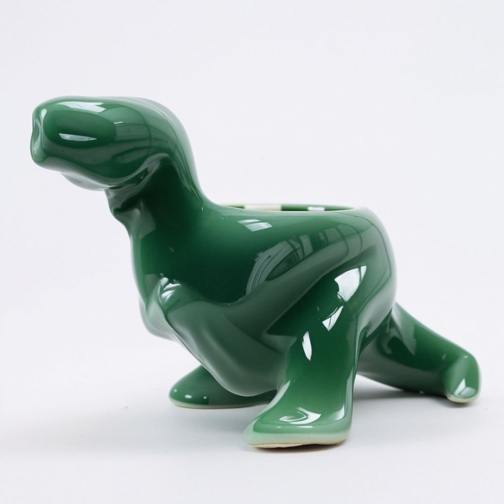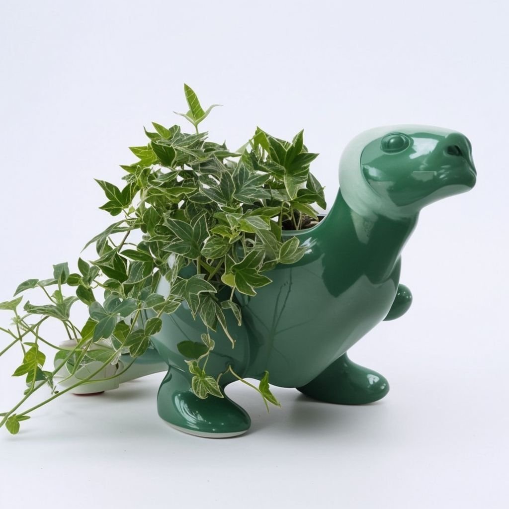Zielona doniczka w kształcie dinozaura